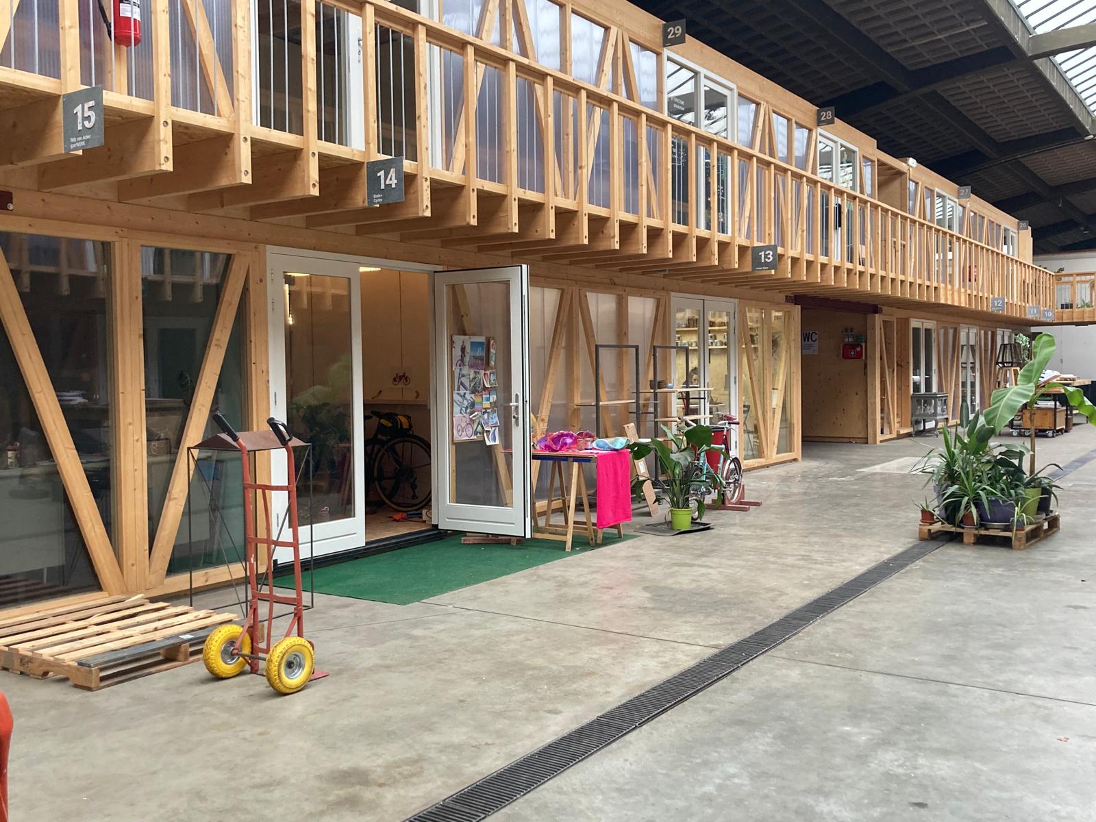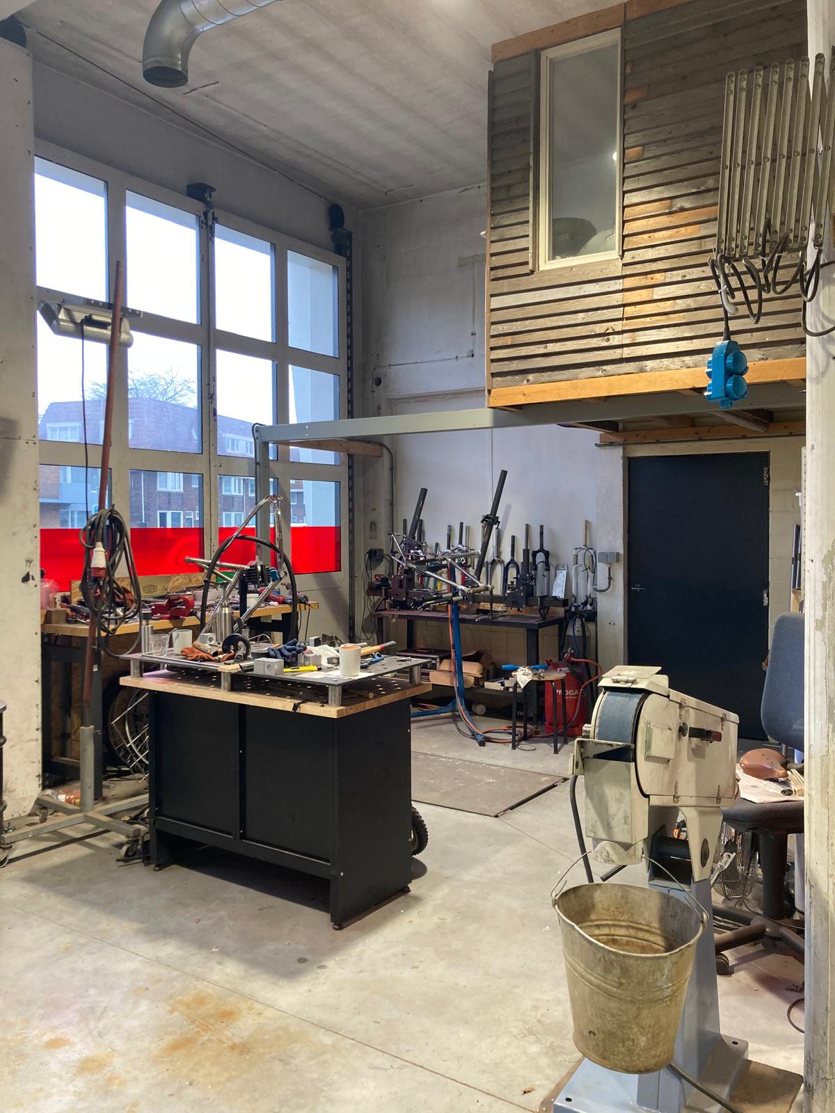 Dit atelier ligt op de begane grond, in het midden aan de voorkant (straat-zijde) van het gebouw.  Achter de binnenruimte heb je plek om spullen op te slaan die je minder zichtbaar wil hebben. Aan de voorkant heb je veel ruimte in de centrale hal voor als je bijvoorbeeld aan een groter object wil werken of als je graag zicht hebt op de andere Werkgebouwers. Deze werkplek ligt vlak bij de metaalwerkplaats die je deelt met één metaalbewerker. Je hebt daar 17.5 m2 van de metaalwerkplaats tot jouw beschikking.